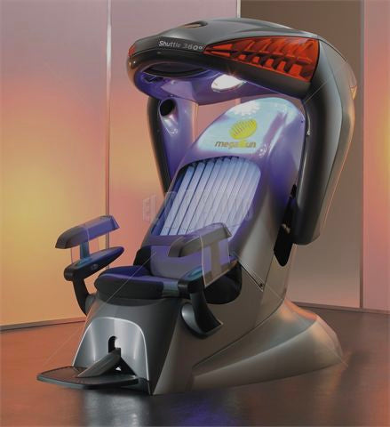 Bronzage sur banc large, et haut, adapté aux personnes claustrophobes. Fonctionnement par bronzeurs réflectifs au niveau du visage, et tubes au niveau du corps.